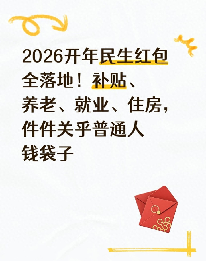 新春开年,一大批民生新政密集出台,从消费补贴到养老待遇,从育儿支持到就业创业,从住房保障到消费维权,每一项都和老百姓的日常生活紧密挂钩。很多人只听说有福利,却不清楚自己能领什么、怎么领、要注意什么。今天用最实在的大白话,把2026年最新民生政策讲透彻,不绕弯、不空洞,全是能用上的干货,让大家看懂、吃透、享受到位。
